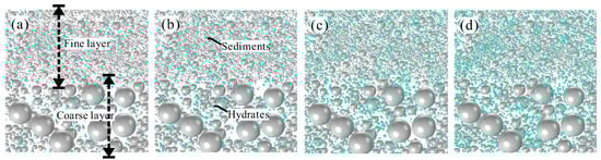 Hydrates distributed in coarse layer: (a) Sh = 0.050; (b) Sh = 0.075; (c) Sh = 0.125; and (d) Sh = 0.200.
