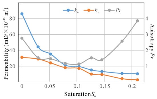 According to Equations (14) and (15), the permeability anisotropy can be expressed as