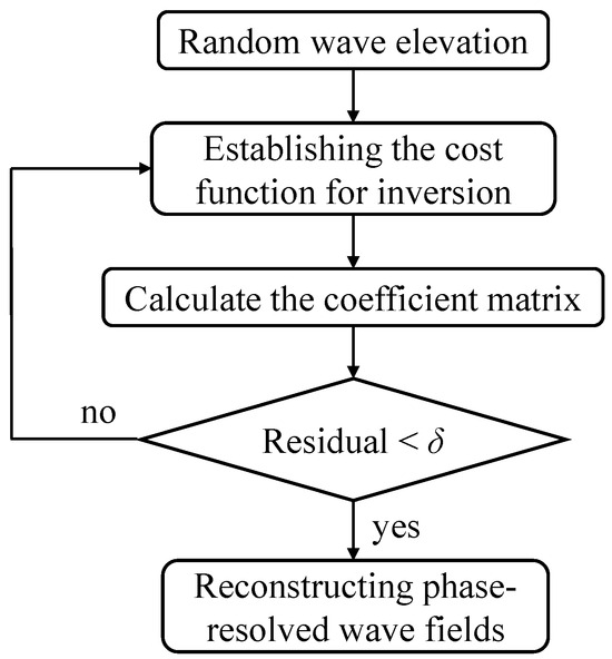 With the methodology clearly outlined, we now focus on the experimental design and the processes involved in constructing the datasets for our study. To invert and reconstruct the phase-resolved wave field from the sampling point , we employ the linear wave theory (LWT) model. The overall flow of the reconstruction algorithm is shown in Figure 2, where is added as the random initial condition. Then, we calculate the coefficient matrix for the LWT model through iteration, with a convergence criterion .