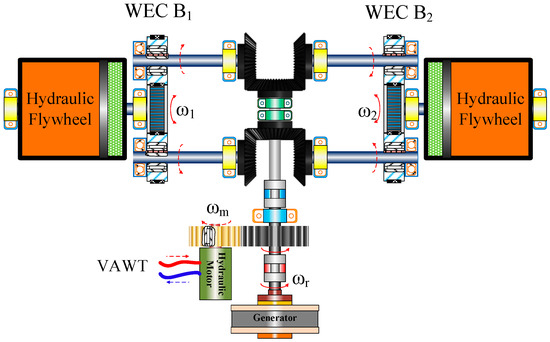 - A comprehensive analytical model in the time domain for the proposed HWWECS, combining the modeling of the WEC, VAWT, hydraulic system, and electric generator.