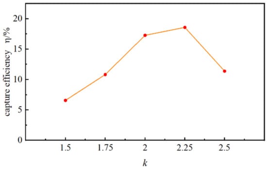 Energy capture efficiency of a rotating moving cylinder under different k values.