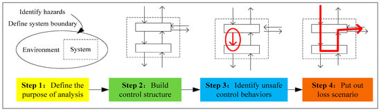 The STPA method is a systematic safety assessment technique rooted in system-theoretic accident modeling and processes (STAMP). It approaches system safety as a control problem rather than one of component failure []. This top-down analysis method constructs a system model using functional control diagrams, diverging from the physical component diagrams utilized in traditional hazard analysis methods. Notably, STPA comprises four consecutive steps that can be iteratively implemented at any level of abstraction.