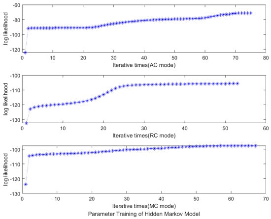 The Baum–Welch algorithm [] is an iterative procedure that can determine the parameters sub-optimally, similar to the expectation maximization (EM) method. It operates as follows: