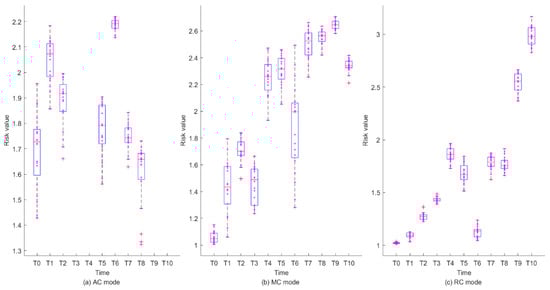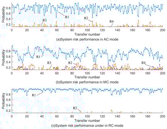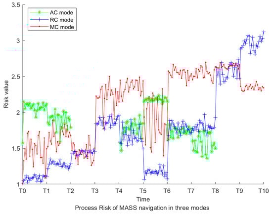 Referring to previous research literature [,] on the definition of ship navigation modes, this study redefines three NCMs based on the distinct “actual controllers” of MASS, specifically: autonomous control (AC) mode, manual control (MC) mode, and remote control (RC) mode. It is posited that different control paths and processes exist under these NCMs, with risk performance exhibiting Markov properties over time series data, as demonstrated in references [,].
