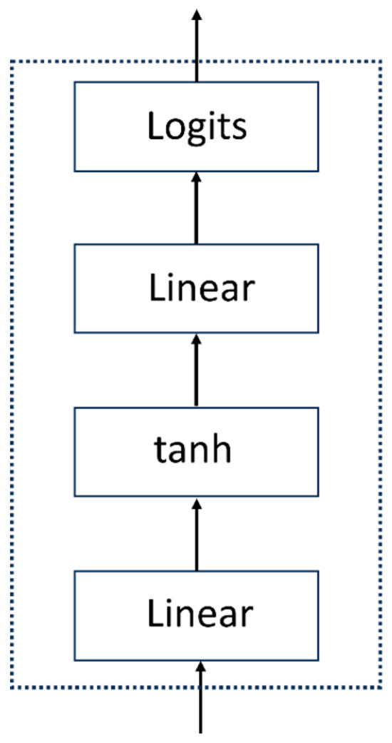 The MLP Head serves as the final layer of the Vision Transformer model, responsible for further nonlinear transformations and feature extraction on the encoded features from the encoder blocks to obtain the ultimate classification results. The MLP Head consists of linear fully connected layers and activation functions. It consists of Linear + tanh activation function + Linear layers (Figure 7).