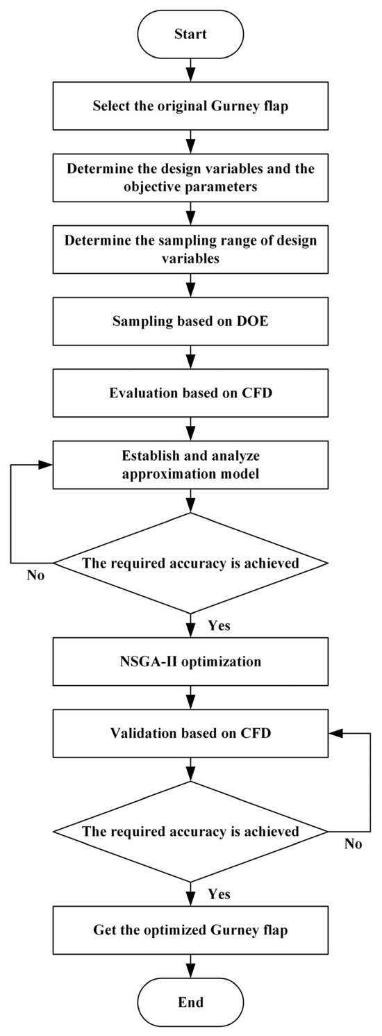 In summary, the current research on Gurney flaps has mainly focused on the wind power field. There is relatively limited research on the optimized design of Gurney flaps considering the dynamic performance of the hydrofoil. Therefore, this study focuses on the S809 hydrofoil and combines multi-objective optimization algorithms with CFD numerical simulation technology to establish a multi-objective optimization design platform by quantifying the dynamic performance of hydrofoil. The aim is to optimize the structure of the hydrofoil with a Gurney flap to improve its dynamic performance by addressing the optimization challenge with a genetic algorithm and providing a reference for the optimization of tidal turbine performance.