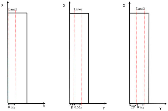 To determine whether an AIS data point is in the corresponding subdivided shipping lane, the relationship between the lateral position Y of the AIS data point in the channel coordinate system (), the length of the channel , and the lateral position Y at the midpoint of the subdivided shipping lane () can be used to judge the AIS data point’s distance away from the midline of the subdivided channel, which is taken as :