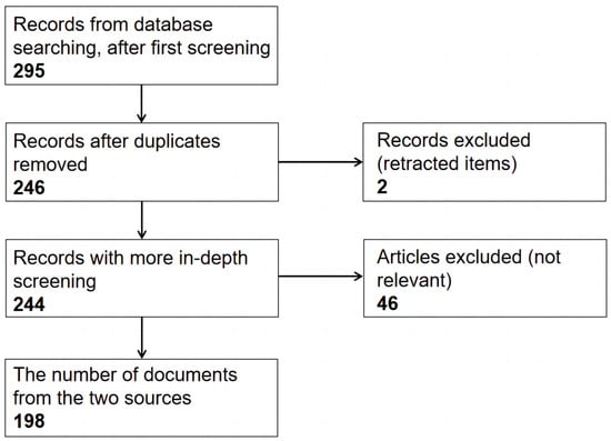 In total, 198 papers were left, which were used in this literature review. A flowchart of the entire selection process is shown in Figure 1.