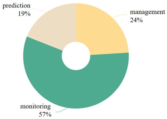 Among AI applications in MP, monitoring accounts for 57%, management for 24%, and prediction for 19% (Figure 4). In this breakdown, the diverse roles that AI plays in addressing MP challenges are highlighted. It is clear, since the most intensive application is in monitoring, that data-driven approaches are critical to the understanding and mitigating of MP. Additionally, AI applications also focus on management and prediction, which means AI would function well in optimizing resource allocation and providing proactive measures to mitigate the impact of MP on ecosystems and human health.