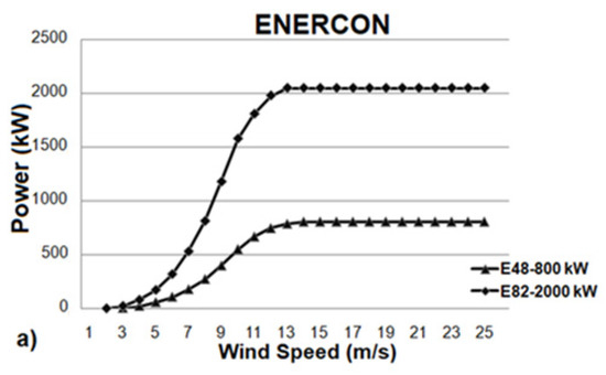 Figure 8 shows the power curves of the wind generators selected for the study, which are manufactured by Enercon, Gamesa and Vestas. All of these machines were tested in different wind farms on Tenerife. The initial economic data for the wind generators and photovoltaic systems are shown in Table 3.
