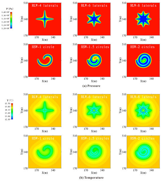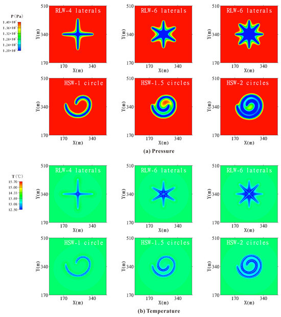 (1) RLW and HSW can effectively improve production capacity by expanding the drainage area, which is directly proportional to the number and length of laterals and the length of the horizontal wellbore. Different from previous research results, during a short-term production period of 360 days and due to the synergistic pressure reduction effect between wellbores, the overall production capacity of HSW was better than that of RLW, regardless of which layer they were deployed to.
