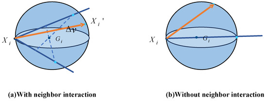 In the fish school strategy, if the shark cannot follow the best shark, it will stay in its position. This was made into a tracking pause. This behavior will waste the chance of exploitation. In fish schooling, there is information of prey that can be used, which is acquired by itself or neighbor sharks. And this information can be applied to the rotational invariant method [48] to improve the exploitation of white sharks. The strategy of rotation invariance is based on the hyperspheres in the search space, the crucial step of this strategy is calculating the center of the hypersphere. And we modify the original strategy to increase the probability of search. The principle of modified strategy to calculate the hypersphere is shown in Figure 5.