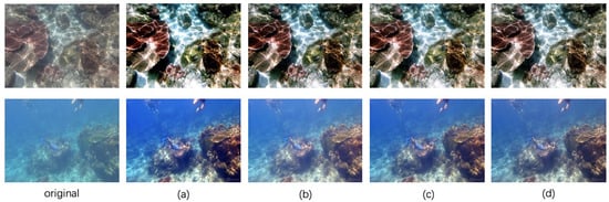 - Ancuti, C.O.; Ancuti, C.; Vleeschouwer, C.D.; Bekaert, P. Color Balance and Fusion for Underwater Image Enhancement. IEEE Trans. Image Process. 2017, 27, 379–393. [Google Scholar] [CrossRef] [PubMed]