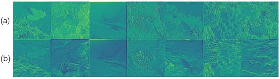 We utilized an extended multi-label dataset UIEBD (Underwater Image Enhancement Benchmark Dataset, which is a multi-label underwater image enhancement dataset) [8]. Some training datasets pictures are shown in Figure 6. A challenge encountered prior to training the probability network was that existing UIE datasets typically provide a single reference map for each degraded underwater image. To facilitate the application of the probability network, we augmented existing UIE datasets by generating multiple reference images. The new dataset we adopted is based on UIEBD [10], a real-world UIE dataset comprising 890 underwater images along with corresponding reference maps.