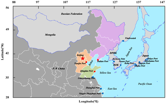 Location of the Bohai Rim multi-port system and map of gateway ports in Northeast Asia.