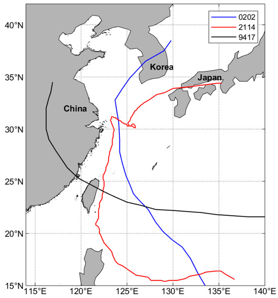 Based on the existing storm surge measurement data collected from S1, S2, and S3, Typhoon 9417, which had a significant impact on the Yueqing Bay area in history, Typhoon 0205, which had a significant impact on Shangang, and Typhoon 2114, which had a significant impact on Hangzhou Bay, were selected for simulation verification.