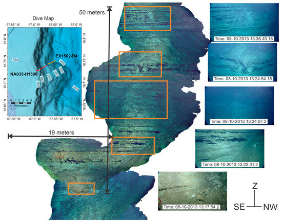 - Detmer, S.; ten Brink, U.S.; Flores, C.H.; Chaytor, J.D.; Coleman, D.F. High Resolution 3D Geological Mapping Using Structure-from-Motion Photogrammetry in the Deep Ocean Bathyal Zone. In Proceedings of the AGU Fall Meeting 2021, New Orleans, LA, USA, 15 December 2021. [Google Scholar]