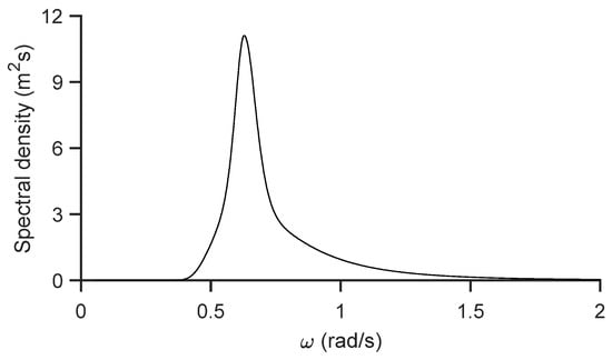 where and are the proportions of the energy of the random and transient waves, respectively. is equal to 80%, and is equal to 20% [4]. The frequency spectrum is defined using the JONSWAP spectrum [39], which is a typical narrow-band spectrum, commonly used to generate freak waves [35]. It is expressed as follows: