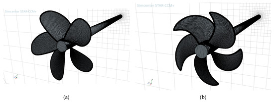 Grid of the propellers: (a) B-series propeller; (b) original propeller.