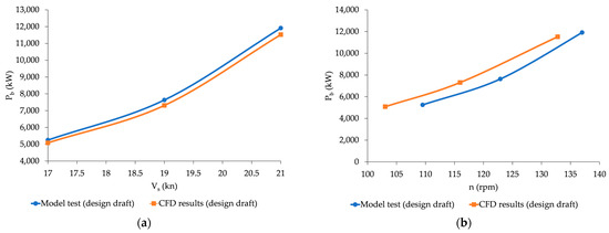Second-level verification involves conducting a CFD simulation for a draft for which there are available results from the model tests or sea trials. The difference between the results obtained by the CFD analysis and model tests/sea trials should not be greater than 5% [47]. This kind of verification is typical in applied CFD analysis in the maritime industry [50,51].