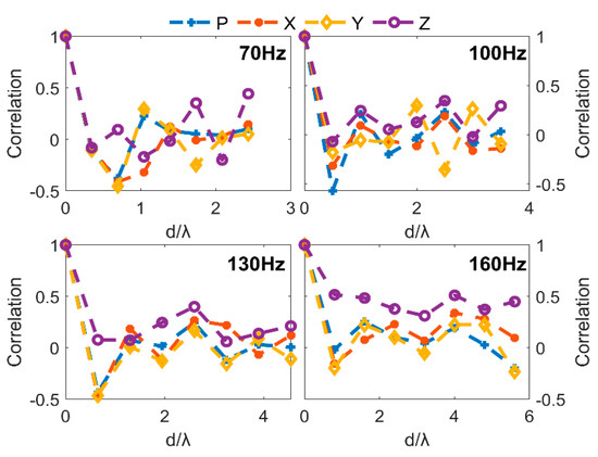 We roughly adopt the noise of 69 Hz for analysis since it is challenging to extract the noise information from the 70 Hz received signal. Specifically, on the one hand, the received noise of the Z sub-array shows a weak and positive correlation and thus weakens the array gain, as presented in