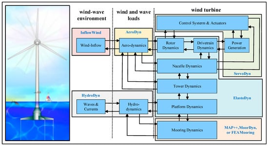 Block diagram of the multiphysics components involved in the FOWT simulation using OpenFAST.