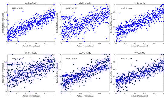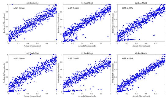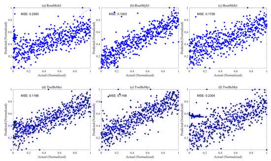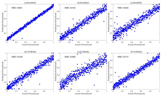 Through comprehensive evaluation of these models, the optimal model for the current task of fatigue load modeling for floating wind turbines can be selected. The algorithm pseudocode for evaluating and selecting the best model among the five is provided in Algorithm 1, outlining a complete framework from data preprocessing and correlation analysis to training and evaluation of machine learning models. Initially, compute correlations between wind and wave environmental variables, turbine operational states, and equivalent damage loads. Next, select the four variables most correlated with equivalent damage loads as inputs for machine learning models. Then, initialize and train the five different machine learning models (Kriging, MLP, SVR, BNN, and RF) using the selected input variables to predict equivalent damage loads. Finally, assess each model’s performance using appropriate metrics such as Mean Squared Error (MSE), outputting predicted equivalent damage loads and evaluation metrics for comparison and analysis.