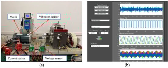The experimental platform. (a) Motor test bench; (b) digital data acquisition system.