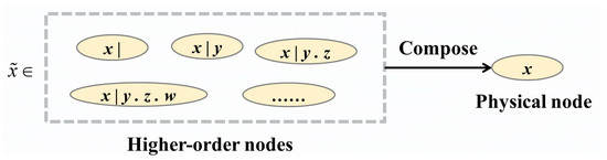 We establish the correspondence between higher-order nodes and physical nodes through Figure 3. For instance, higher-order nodes such as , , , collectively form a physical node x, .