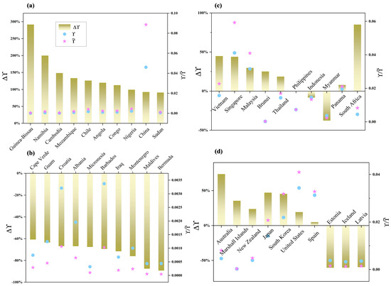 The MSHOD is also applicable to other regions, identifying ports within each region that have significant increases in . These ports are usually not prominent in traditional throughput analyses and the SSFODN, but they hold greater importance in global dependency analysis.