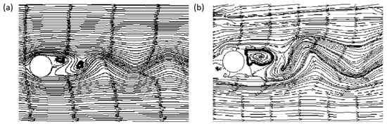 - Yokuda, S.; Ramapriam, B.R. The dynamics of flow around a cylinder at subcritical Reynolds numbers. Physic Fluids 1990, 2, 784–791. [Google Scholar] [CrossRef]