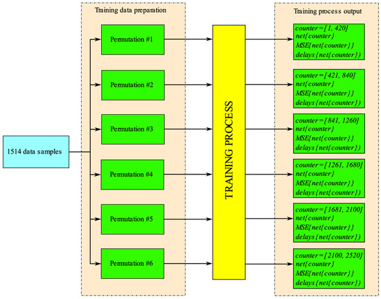 The experiments were conducted to determine the optimal number of input delays (n and m), i.e., the number of inputs resulting in the creation of 2520 ANN NARX models in total. The number of experiments, i.e., the models produced, were influenced by the idea of increasing the generalization abilities and robustness of the model.