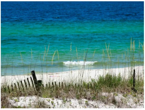 Vegetation on sand dunes on Mexico Beach, FL before Hurricane Michael https://www.onlyinyourstate.com/florida/fl-forgotten-coast-small-beach-town/ (accessed on 5 July 2018).