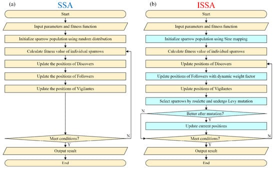 Flowchart of the SSA and ISSA. (a) SSA. (b) ISSA.