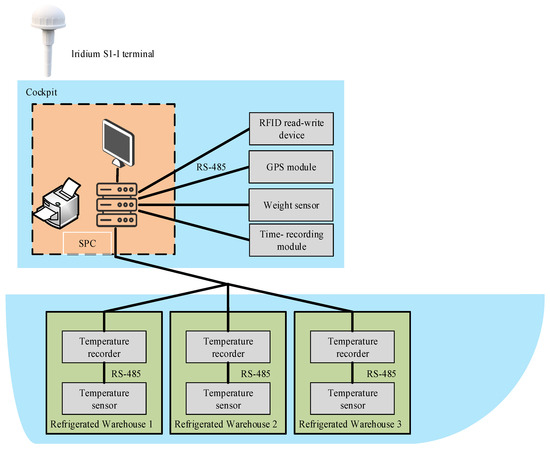 To verify the performance of the improved PBFT algorithm in the constructed marine cold chain traceability system, we carried out experiments on marine fishery vessels from Zhoushan Ningtai Marine Fisheries Co., Ltd. in Zhoushan, Zhejiang Province, China. Marine fishery vessel nodes communicate with the shore-based server by Iridium satellites to upload the related data. Marine fishery vessels operate in the North Pacific, Southeast Pacific, Southwest Atlantic, and Indian Ocean regions. These vessels are equipped with advanced temperature control systems to ensure the freshness and high quality of the catch, as illustrated in