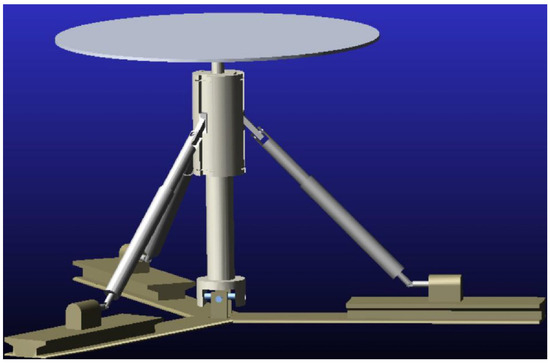 To verify the rationality of the structural design and ensure the stability of the platform during the compensation process, simulation analysis was conducted using motion simulation software. First, the designed model was simplified in UG11.0 (Unigraphics NX), then saved and exported as an .x_t file. The exported .x_t file was then opened in motion simulation software, as shown in Figure 3.