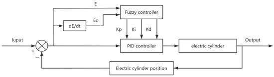 This structure is primarily used in the field of wave compensation. In harsh marine environments, various uncertainties can lead to inaccurate platform compensation and untimely response. Since fuzzy PID control can achieve efficient control in complex and nonlinear systems, the system can be controlled using a fuzzy PID controller. This enables the entire structure to achieve efficient and precise control in complex and harsh environments. The specific control scheme is shown in Figure 10.