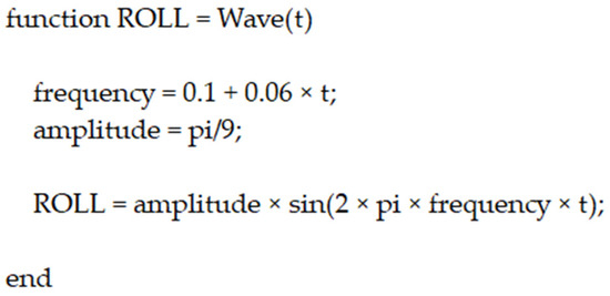 The compensation angle caused by waves often varies randomly over time. To better simulate the system’s response to waves, a varying compensation angle function was implemented using a function block in the control system simulation software. The specific function is shown in the figure below.