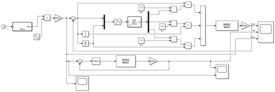 First, fuzzy PID control is built in control system simulation software using fuzzy, where the , and parameters are first adjusted in PID using the PID tuner APP that comes with control system simulation software, and then the parameters of , , and are obtained by manual slight modifications. Secondly, a sinusoidal function simulating the change in wave motion is built, and the final control block diagram is shown in Figure 14. Finally, , , and in the fuzzy PID are obtained through trial and error and PID tuner APP.