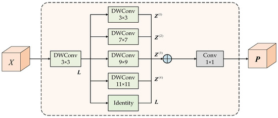 As shown in Figure 5, the PK module first utilizes a small kernel convolution to obtain local information, followed by a set of parallel depthwise separable convolutions to capture contextual information across multiple scales [34].
