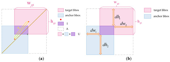 where is the absolute distance between the corresponding edge of the prediction frame and the target frame, , are the width and height of the target frame, as shown in Figure 8b.