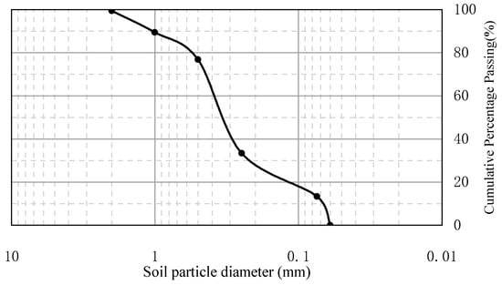 Table 1. To maintain consistency across test specimens, the sand was compacted manually in layers to achieve a relative density of 45% ± 3%. The sandy soil utilized in the experiments was quarried from a riverbed located in Jiangsu, China. It predominantly comprises quartz particles measuring less than 2 mm in diameter, with 13.1% of particles smaller than 0.075 mm and 66% larger than 0.25 mm. The particle size distribution curve of the soil is illustrated in