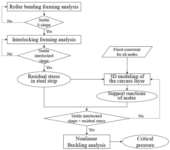 Flowchart of nonlinear buckling of carcass layer considering residual stress due to deformation based on finite element method.