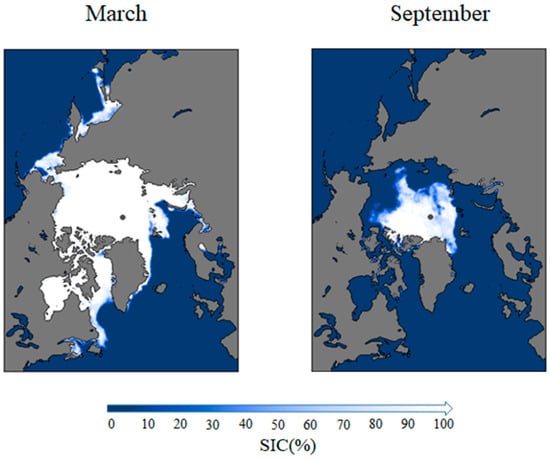 In recent years, the geography of the pan-Arctic region has undergone profound changes as global temperatures have risen, one manifestation of which has been the melting of sea ice [,], which has created new opportunities and challenges for humankind, a process that will continue for the foreseeable future. A new study suggests that the Arctic may experience an “ice-free” summer by 2030 []. Sea ice concentration is important for understanding the geography of the Arctic. It affects the global climate and creates new opportunities for human activities in the Arctic, such as shipping, resource exploration, and scientific expeditions [,]. Arctic shipping lanes can greatly shorten the distance of international shipping lanes, reduce trade costs, and further promote the prosperous development of international trade. Some studies have shown that by 2030, the opening cycle of Arctic shipping lanes may be raised from the current four months to more than half a year []. In general, SIC is an important factor influencing the availability of suitable operational conditions in shipping lanes. Consequently, the short-term prediction of sea ice concentration can provide valuable support for the dynamic planning of short-term navigation in Arctic shipping lanes. The utilisation rate of the waterway can be enhanced while maintaining the safety of ship navigation.