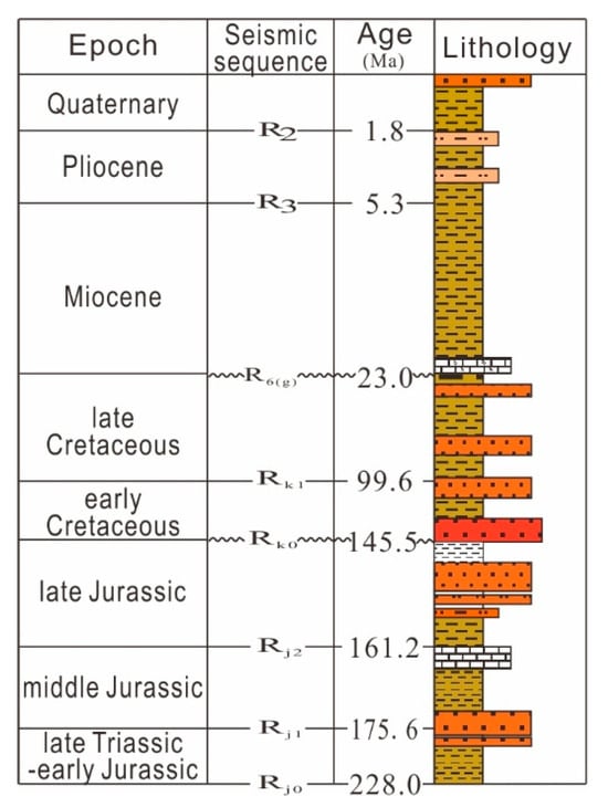 - Hao, H.; Wang, R.; Zhang, X.; Xie, H.; Chen, Z. Mesozoic marine sediment identification and distribution in the eastern Pearl River Mouth Basin. China Offshore Oil Gas 2004, 16, 84–88. Available online: https://www.semanticscholar.org/paper/Mesozoic-marine-sediment-identification-and-in-the-Petroleum/59300365ddad9383f3ac62aa620adfe674c94d52 (accessed on 27 January 2024).