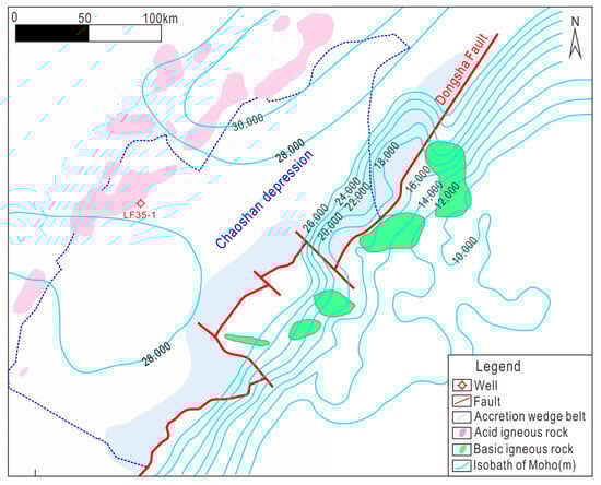 - Yang, S.; Tong, Z.; He, Q.; Hao, J. Mesozoic hydrocarbon generation history and igneous intrusion impacts in Chaoshan depression; South China Sea: A case of LF35-1-1 well. China Offshore Oil Gas 2008, 20, 152–156. Available online: https://en.cnki.com.cn/Article_en/CJFDTOTAL-ZHSD200803002.htm (accessed on 27 April 2024).