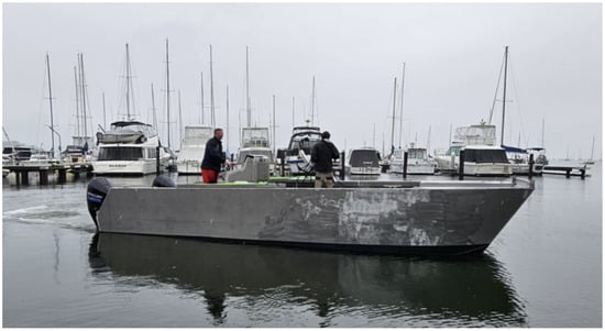 There are as many as ten powered catamaran designers and builders in Australia, with several global brands also imported. The current stock of vessels available to purchase or build are all equipped with large-horsepower outboards and can achieve planing speeds over 30 knots [,]. Further, the mathematics of computational fluid dynamics (CFD) and known naval architecture principles are not yet able to fully calculate and predict a powered catamaran’s hydrodynamic performance [,,,,].
