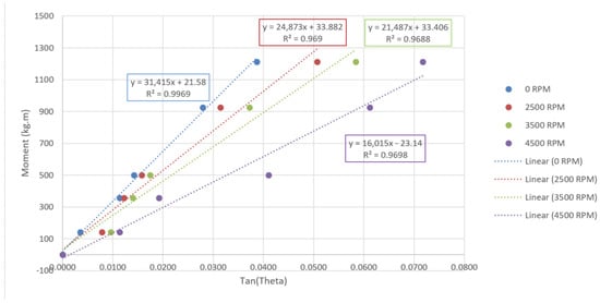 Shown in Figure 6 is the righting moment increasing as the engine’s rpm increases. Observe the consistent increase in heeling moment across each moment (kg.m) across each engine rpm range.