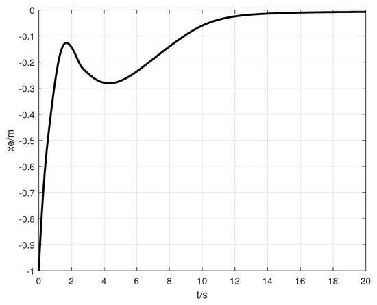 The curves of , are displayed as Figure 4 and Figure 5, respectively. From Figure 4 and Figure 5, , can converge to 0 in a finite time, and the designed controller can make position tracking error have a faster convergence speed.