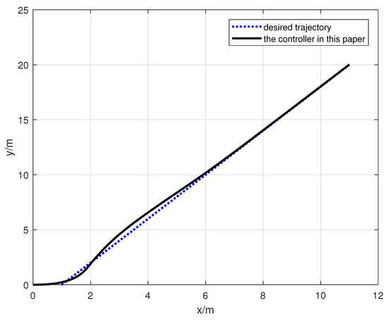 Case 2: To verify the tracking effect of the designed controller on different trajectories, curve trajectories were further selected to verify the effectiveness of the controller. The desired trajectory is: